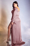**SKU:** 7478 **Brand:** Cinderella Divine **Key Features:** * Portrait V-neckline for a sophisticated touch * Cuffed long sleeves for a touch of elegance * Surplice-style bodice with delicate ruching for intricate detail * Cinched natural waist to accentuate your figure * Draped full-length sheath...- $149.00