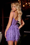**SKU:** PS24005 **Brand:** Portia and Scarlett **Key Features:** * Straight-across neckline * Strapless design * Luxurious velvet fabric * Whimsical feather trims along the neckline * Waistband that accentuates the figure * Mid-rise back * Short hemline * Matching feather-trimmed detachable gloves **Occasions:** *...- $549.00