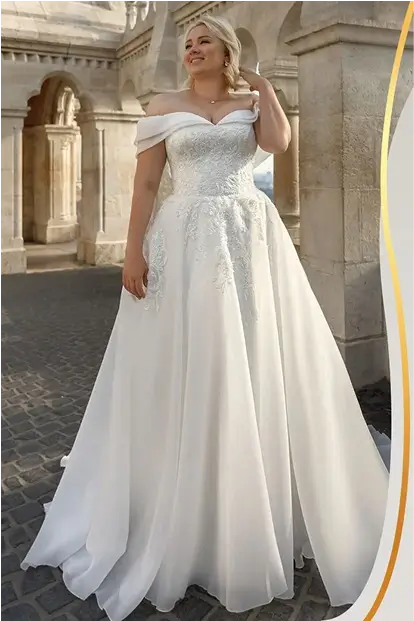 **Shneu's Timeless Elegance: Off-the-Shoulder Wedding Dress for Romantic Brides** OFF WHITE