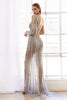 Ladivine Off Shoulder Fringe Prom Dress Beaded Slit Evening Gown CC324 Black/Nude