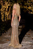 Prepare to captivate on any occasion with the exquisite Portia and Scarlett PS23721c gown. Adorned with a dazzling tapestry of sequins and intricate beading, this masterpiece will turn heads wherever you go. The sleeveless bodice boasts a flattering V-neckline and sheer side cutouts, while dual spaghetti straps ensure a comfortable fit. The sheath silhouette effortlessly contours your figure, and the daring thigh-high leg slit adds a touch of allure. Shimmering in the Silver Nude hue, this Portia and Scarlett creation will make you feel like a true queen.