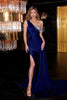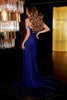 Step into sophistication with grace in this stunning Portia and Scarlet PS22222 dress. This exquisite evening gown features a captivating asymmetrical neckline and a single, elegantly draped off-the-shoulder sleeve. The fitted bodice, adorned with delicate beading, accentuates your curves, while the flowing skirt with a daring slit adds a touch of allure. The skirt cascades down to a full-length hemline, creating a sleek and sophisticated silhouette. Embrace your inner goddess and be the star of the night in this breathtaking creation from Portia and Scarlet.