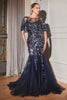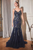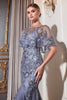 Step into the realm of elegance with this exquisite capelet dress from Ladivine by Cinderella Divine. Its fitted mermaid skirt hugs your curves, while the flowing layered tulle Godet skirt adds a touch of ethereal romance. The intricate floral print design is adorned with delicate crystals, lending a touch of sophistication and sparkle to your ensemble. The removable matching embellished capelet offers a versatile style choice, allowing you to create a bold statement or a more understated look depending on the occasion. Elevate the room's ambiance with this breathtaking gown, perfect for making a lasting impression at any special event.