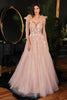 CM382 Ladivine Rose Gold Strapless Beaded Evening & Prom Dress Rose Gold