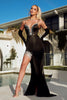 Ladivine Off Shoulder Fringe Prom Dress Beaded Slit Evening Gown CC324 Black/Nude
