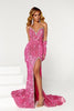 Prepare to captivate in the Portia and Scarlett PS23680 maxi dress. This breathtaking creation is adorned with exquisite beadwork and shimmering sequins that catch the light, creating a dazzling display. Gorgeous stone embellishments add a touch of opulence, while the sleeveless and strapless design ensures comfort. The high slit adds a touch of allure and allows for easy movement. The dress is complete with a sweep train that adds a touch of drama, making it perfect for formal occasions. Available in Pink, Red, Cobalt, and Purple, this masterpiece is guaranteed to capture attention and leave a lasting impression.