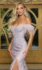 Prepare to captivate in this breathtaking Portia and Scarlett evening gown. Its meticulously crafted fit-and-flare silhouette flatters every curve, while the off-shoulder neckline and mid-bust inset accentuate your décolletage. Adorned with shimmering appliques, this gown exudes elegance. The feather embellishments on the short sleeves add a touch of ethereal glamour, cascading gracefully down the skirt. The thigh-high slit creates a tantalizing silhouette, making you the center of attention at any event. Elevate your style with this sensational gown from Portia and Scarlett, designed to turn heads and leave a lasting impression.