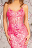 Adorned with intricate floral sequin details, this gown shimmers and sparkles under the lights. The floor-length trumpet skirt is accentuated with elegant ruffles, enhancing its allure. The vibrant Hot Pink hue makes a bold statement, ensuring you stand out in any crowd.