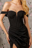 Elevate your look with sophistication and poise in the GLS by Gloria GL3456 evening gown. This chic dress exudes elegance with its refined off-shoulder neckline and sheer inset on the fitted corset bodice. The mid-open back with a lace closure adds a graceful touch. The full-length sheath skirt drapes beautifully on the hips, while the captivating high slit enhances the gown's allure. Complete with a sweeping train, this gown is undeniably glamorous. Turn heads and radiate beauty in this stunning piece by GLS by Gloria, available in a range of hues to complement your style: Black, Burgundy, Perry Blue, Sage, and Teal.