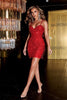 Prepare to captivate hearts in the exquisite Portia and Scarlett PS22783C dress. This stunning piece is a symphony of elegance and allure, adorned with shimmering sequins and beads that dance across its figure-flattering length. The spaghetti straps gracefully frame a sweetheart neckline, enhancing the overall appeal of the dress. Sculpting the waist and accentuating the feminine form, the gown is embellished with beaded fringes that flow beautifully as it showcases a sheath skirt culminating in a stylish mini hemline. Make a statement that will leave a lasting impression in this inspired Portia and Scarlett masterpiece. Available in a vibrant Orange color option.