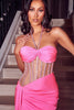 Step into the spotlight and embrace the epitome of glamour in this stunning Portia and Scarlett PS23341 gown. The ruched sweetheart neckline and beaded halter straps create a captivating allure, while the sheer corset bodice adorned with sparkling beadwork adds a touch of opulence. The open back exudes sophistication and drama, complemented by the draped skirt that flows effortlessly to the floor-length hem. A high thigh-high slit adds a hint of allure, highlighting your toned legs. Available in a vibrant Pink hue, this gown is sure to make a lasting impression.