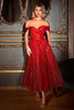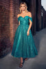 Prepare to turn heads in the Cinderella Divine CD870 Dress. This exquisite gown features sparkling glitter fabric that will make you the center of attention wherever you go. Its flattering A-line silhouette and layered tulle skirt create a voluminous and eye-catching look. The off-the-shoulder neckline adds a touch of sophistication, while the tea-length design makes it suitable for a wide range of occasions. Whether you're attending a dinner and drinks night or a special event, this glamorous dress will ensure you make a lasting impression.