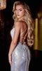 Prepare to make a jaw-dropping entrance with this mesmerizing evening gown inspired by the iconic Portia and Scarlett design. This all-uring dress is meticulously crafted from iridescent fabric that shimmers and catches the light. Its sleeveless silhouette features a low-cut sweetheart neckline, elegantly supported by spaghetti straps. The open back boasts a crisscross design and is fastened with a lace-up tie and zipper closure. Designed with corset boning, the dress sculpts your figure to perfection. The sheath skirt flows gracefully, featuring a high slit that adds drama to your stride. A sweep train finishes the look, exuding elegance and sophistication. With your stunning presence in this Portia and Scarlett masterpiece, you're sure to steal the spotlight and leave everyone in awe.