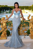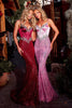 Step into the spotlight with the epitome of elegance in the breathtaking Portia and Scarlett PS23476 gown. This captivating masterpiece exudes romance and femininity, featuring intricate corset boning that sculpts your figure to perfection. Swirling accents add a touch of whimsy, while the deep V-neck and beaded Basque waist create an alluring silhouette. The skirt, adorned with a shimmering glitter print overlay, gracefully flows into a mesmerizing mermaid silhouette, complemented by a trailing train that will leave a lasting impression. Available in both Blue and Pink, this Portia and Scarlett masterpiece guarantees you a remarkable and decadent style that will leave admirers in awe.