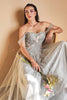 * Sweetheart bodice adorned with intricate beaded embellishments featuring delicate foliage and bird motifs