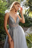 Radiate beauty and elegance in this extraordinary gown. The captivating rhinestone embellishments dance under the lights, creating an ethereal glow that will make you the center of attention. The sleeveless bodice features a plunging V-neckline that adds a touch of allure, while the delicate spaghetti straps ensure a secure and flattering fit. The full-length skirt boasts a dramatic high slit, allowing you to move with grace and confidence. This gown is the epitome of sophistication and will make you feel like a true star on any special occasion.