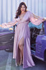 Indulge in the timeless elegance of the Cinderella Divine 7475C Plus Size Satin Dress. Crafted from luxuriously soft satin, this floor-length gown exudes sophistication and grace. The captivating split blouson sleeves add a touch of romance, while the pleated wrap-effect bodice and deep V-neckline create an alluring silhouette. The gathered A-line skirt flows gracefully, adorned with a high-grazing split that offers a tantalizing glimpse of glamour. Embrace this enchanting ensemble for an unforgettable presence at any formal event.