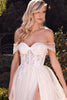 Embrace the timeless elegance of the Cinderella Divine A1036W gown on your special day. This enchanting creation features an intricate lace overlay that gracefully adorns the corset bodice, creating a captivating sweetheart neckline. The delicate sheer shawl accent adds a touch of ethereal beauty.