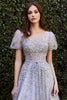 Embrace the enchantment of the Cinderella Divine B708 gown and make your special occasion unforgettable. This ethereal masterpiece features a sheer bateau neckline and back adorned with delicate floral appliqués that cascade down to a corset-style sweetheart bodice. Sheer puffed sleeves add a touch of glamour, while the lace-up back with center zipper ensures a secure and flattering fit. As you make your grand entrance, the voluminous multilayer tulle ball gown skirt will gracefully float, creating a captivating and otherworldly effect. This exquisite Cinderella Divine creation is destined to make you the darling of the party, leaving a lasting impression on all who behold its timeless elegance and charm.