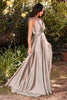Illuminate the room with your presence in the enchanting Cinderella Divine BD105. This exquisite creation captures the essence of elegance and allure, making you the center of attention. The gown's delicate spaghetti straps lead to a deep V-neckline that frames your figure beautifully. The soft draping adds a touch of romance to the design, while tie straps and an open back add a contemporary twist to the classic silhouette. As you move, the draped slit reveals a glimpse of leg, adding a hint of sensuality to the ensemble. The skirt flows gracefully, culminating in a sweeping train that adds an element of drama to your every step. With Cinderella Divine BD105, you'll be sure to capture that twinkle in his eye and leave a lasting impression.