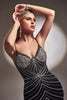 Ladivine Off Shoulder Fringe Prom Dress Beaded Slit Evening Gown CC324 Black/Nude