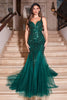 Step into a fairytale with this exquisite Beaded Layered Tulle Mermaid Gown. Its shimmering tulle fabric, adorned with intricate beading, creates a breathtaking and luxurious look. The mermaid silhouette flatters your figure, while the layered tulle godets add an extra touch of drama and glamour. Dazzling straps accentuate the plunging neckline, and side waist cutouts add a hint of sultry allure. The open V-back serves as the perfect finishing touch, ensuring you'll turn heads wherever you go. Whether you're attending a prom, wedding, or any other formal event, this gown is guaranteed to make a showstopping entrance.