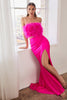 Enter the spotlight with Cinderella Divine C141, a gown that exudes confidence and charm. Its tailored lines and feather accents create an exquisite bodice that flatters the figure. The straight-across neckline and daring midriff cutout add a touch of allure, while the mermaid skirt gracefully cascades into a sweeping train. A high slit reveals a glimpse of leg, adding an element of drama. Whether you're gracing the red carpet or attending a formal event, this gown will make a lasting impression.