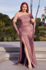 Indulge in the epitome of elegance with the Cinderella Divine CD979C plus-size fitted long dress. Crafted from luxurious stretch satin, this gown exudes sophistication and allure. Its one-shoulder design accentuates your neckline, while the fitted bodice with tasteful gathers adds a touch of texture and dimension. The form-fitting sheath skirt gracefully drapes down, creating a flattering silhouette. A dramatic thigh-high leg slit adds a touch of allure, while the matching gloves complete this captivating look. Whether you're attending a prom, pageant, or black-tie event, the Cinderella Divine CD979C will ensure you command attention and captivate the crowd.