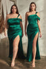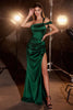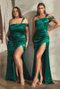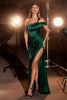 Indulge in the epitome of elegance with this captivating satin gown by Cinderella Divine. Its one-shoulder design with an off-the-shoulder drape exudes a touch of allure, while the pleated waistline cinches your figure for a flattering silhouette. The soft satin fabric cascades over your body with grace, creating a mesmerizing effect that will turn heads. The leg slit adds a hint of boldness, making this gown perfect for any special occasion where you want to make an unforgettable statement. Whether you're attending a prom, a wedding, or a red carpet event, this striking piece will elevate your style and leave a lasting impression.