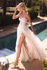 Embark on a journey of radiance with the exquisite Cinderella Divine CB065W bridal gown. This strapless masterpiece is a picture of perfection, featuring a corset-style bustier bodice adorned with delicate floral appliques. The gown effortlessly cinches at the natural waist, accentuating your curves and leading to a breathtaking layered tulle A-line skirt. A daring thigh-high leg slit adds a touch of allure to this love-inspired creation. As you step into the spotlight, get ready to captivate all eyes and hearts with your fabulous presence. This gown is more than a dress; it's an expression of your unique beauty and elegance.