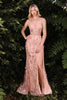 CM382 Ladivine Rose Gold Strapless Beaded Evening & Prom Dress Rose Gold