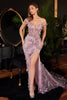 Prepare to enchant in the ethereal Cinderella Divine CC2164 gown. This masterpiece radiates sheer elegance and captivating charm. Adorned with a lavish crust of gilded floral lace appliques and intricate shimmering beadwork, this dress is a work of art that will mesmerize all who behold it.