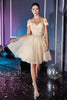 Indulge in the ethereal beauty of the Cinderella Divine CD0132 cocktail dress. This exquisite masterpiece captivates with its alluring sweetheart neckline and graceful cold-shoulder sleeves adorned with intricate lace detailing. The bodice is a symphony of elegant lace, while the back features a captivating lace-up detail that adds a touch of allure. The enchanting glittering tulle skirt flares in a flattering A-line silhouette, creating a perfect blend of elegance and charm that will make you the star of any special occasion.