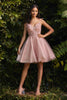 Step into the spotlight with the enchanting Cinderella Divine CD0188 cocktail dress. This exquisite creation boasts a sleeveless bodice that features a plunging sweetheart neckline, exuding elegance and allure. The sheer corset bodice is adorned with intricate beaded and floral lace appliques, adding a touch of romance and sophistication. The A-line skirt is crafted from sparkling tulle that beautifully tapers down to a mid-thigh length hemline, creating a stunning silhouette that is sure to make you the loveliest presence at any event. Radiate unmatched charm and become the center of attention in the Cinderella Divine CD0188 cocktail dress.
