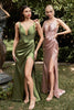 Step into a realm of elegance with the exquisite Cinderella Divine CD231 gown. This masterpiece is meticulously crafted with sculpting seams that enhance its ethereal silhouette. The plunging V-neckline is elegantly framed by tank straps and an illusion inset, creating a captivating focal point. The basque waist accentuates your curves, while the sheath skirt opens with a sultry slit, adding a touch of allure. As it flows into a graceful train, the gown exudes sheer opulence and timeless beauty. Whether it's a unique prom dress, bridesmaid attire, or a gown for the Mother of the Bride, this masterpiece is the epitome of elegance and sophistication.