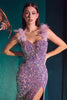 Step into a realm of enchantment with the Cinderella Divine CD248 gown. Adorned with iridescent sequins, this masterpiece creates a mesmerizing effect that will turn heads wherever you go. Its sleeveless bodice boasts a deep sweetheart neckline, gracefully held by delicate thin straps adorned with ethereal feathers. The mid-open back is secured with a convenient zipper closure, allowing you to move with ease. The lavish design flows effortlessly into a sheath silhouette, enhanced by a high slit that adds a touch of allure. The gown culminates in a sweep train that will make a breathtaking statement as you make your grand entrance. Embody elegance and femininity in this exquisite Cinderella Divine creation, designed to make you feel like a true princess on your special occasion.