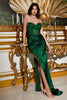 Elevate your elegance with the enchanting Cinderella Divine CD282 creation. This timeless and sophisticated gown features an illusion corset top that beautifully highlights your waist with exposed boning. The lace appliqués and intricate beaded embellishments on the fitted bodice add a touch of glamour. The dress is enhanced with a sweetheart neckline complemented by a mid-open zipper back and a chic strapless design. The draped skirt gracefully flows into a full-length sheath silhouette, accentuated by a high leg slit that reveals just the right amount of allure. The gown's sweeping train adds a touch of drama, making it perfect for any special occasion.