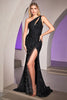 Embrace the opulence of a Hollywood icon in this captivating Cinderella Divine CD884 creation. Shimmering sequins dance across its figure-hugging silhouette, creating an unforgettable glow. The alluring one-shoulder neckline frames your décolletage, while a seductive keyhole cutout adds a touch of intrigue. Sheer tonal overlay sides and a partial open back provide a tantalizing glimpse of skin. The sheath skirt features a sultry slit that opens up as it elegantly trails into a floor-grazing sweep of train, exuding a sense of sophistication and glamour that will leave a lasting impression.