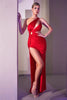Step into a realm of elegance and grace with the enchanting Cinderella Divine CD887 gown. This stunning creation is adorned with shimmering glitter that dances with the light, creating an ethereal glow. The asymmetrical neckline is a statement in itself, complemented by multiple cutouts that add a touch of modern allure.