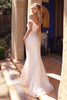 Radiate an alluring blend of sophistication and timeless elegance on your special day with the Cinderella Divine CD929 Bridal Dress. This exquisite gown boasts a full-length sheath silhouette that flatters your figure. The art Deco glitter print mesh adds a touch of sophistication, while the off-shoulder sweetheart neckline gracefully frames your collarbone. The fitted bodice is adorned with delicate floral lace appliques that impart a romantic charm. The gown's back is secured with a concealed center zipper, ensuring a seamless look. The skirt elegantly drapes to the floor, culminating in a subtle train that adds a touch of regal elegance to your bridal ensemble. Cinderella Divine CD929 is the ideal choice for brides seeking a perfect balance between alluring and timeless elegance on their special day.