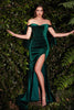 Ladivine Off Shoulder Fringe Prom Dress Beaded Slit Evening Gown CC324 Black/Nude