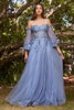 Embrace your curves and radiate confidence in the enchanting Cinderella Divine CD962 prom dress. This captivating gown showcases intricate floral embellishments that add a touch of romance to the fitted bodice. The off-the-shoulder corset bodice features a flattering sweetheart neckline, perfectly highlighting your décolletage. The detachable bishop sleeves add an elegant and whimsical touch, while the A-line skirt is beautifully crafted with a tulle overlay, creating a dreamy and ethereal look. The horsehair hemline adds a touch of drama and movement to complete the ensemble. This dress is a perfect choice for those who want to showcase their figure while exuding elegance and grace.