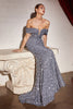 Step into the spotlight with the enchanting Cinderella Divine CD975 gown. Adorned with opulent sequins that shimmer like a thousand stars, this dress is a true showstopper. The captivating sweetheart neckline and illusion inset create a flattering silhouette, while the delicate off-shoulder sleeves frame the upper body with grace. The dress offers the option of attaching spaghetti straps for additional support. The skirt gracefully flares out, leading to a sweeping train that adds a touch of sophistication to the overall look. Radiate effortless elegance and turn heads in this exquisite Cinderella Divine creation.