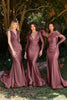 Embrace the spotlight with the Cinderella Divine CD979 evening gown. This exquisite creation seamlessly blends elegance and allure, featuring a fitted bodice adorned with intricate ruching that adds depth and texture. The sweetheart neckline exudes femininity, while the asymmetric sleeves offer versatile styling options. The mid-open back adds a touch of sophistication, secured with a zipper closure. The skirt boasts a front high side slit, adding a sultry edge as it gracefully falls into a full-length trumpet silhouette. The ensemble is beautifully completed with a trailing sweeping train and detachable gloves, making you the epitome of glamour and sophistication at any formal event.