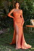 Indulge in the captivating allure of the Cinderella Divine CD979C plus-size fitted long dress. Crafted from luxurious stretch satin, this gown exudes confidence with its one-shoulder design. The fitted bodice is adorned with tasteful gathers, adding texture and dimension to the look. The form-fitting sheath skirt elegantly drapes down, while a dramatic thigh-high leg slit adds a touch of allure. To complete this captivating ensemble, the gown comes with matching gloves, ensuring you command attention and captivate the crowd at your special occasion.