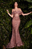 CM382 Ladivine Rose Gold Strapless Beaded Evening & Prom Dress Rose Gold