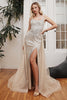 Ladivine Off Shoulder Fringe Prom Dress Beaded Slit Evening Gown CC324 Black/Nude