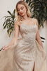 * Scoop neckline with delicate beaded spaghetti straps