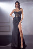 Indulge in the epitome of feminine elegance with the Cinderella Divine CDS423 gown. This strapless masterpiece features an intricately beaded bodice that showcases a sheer overlay adorned with exposed boning. The wide V-neckline accentuates your décolletage, while the illusion back adds a touch of allure with its mid-open design and central zipper fastening. Asymmetrical pleats grace the sheath skirt, adding dimension and movement to the silhouette. A daring high leg slit provides a playful glimpse of skin, adding a flirtatious touch to the ensemble. The dramatic sweeping train finishes the look with a touch of opulence, making you the epitome of sophisticated glamour.