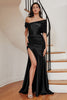 Ladivine Off Shoulder Fringe Prom Dress Beaded Slit Evening Gown CC324 Black/Nude